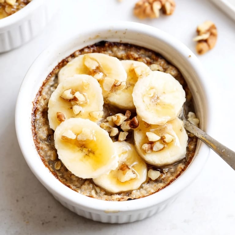 Save to Pinterest A warm, nourishing breakfast treat featuring creamy baked oats, sweet banana, and a drizzle of honey, baked to perfection in individual ramekins.