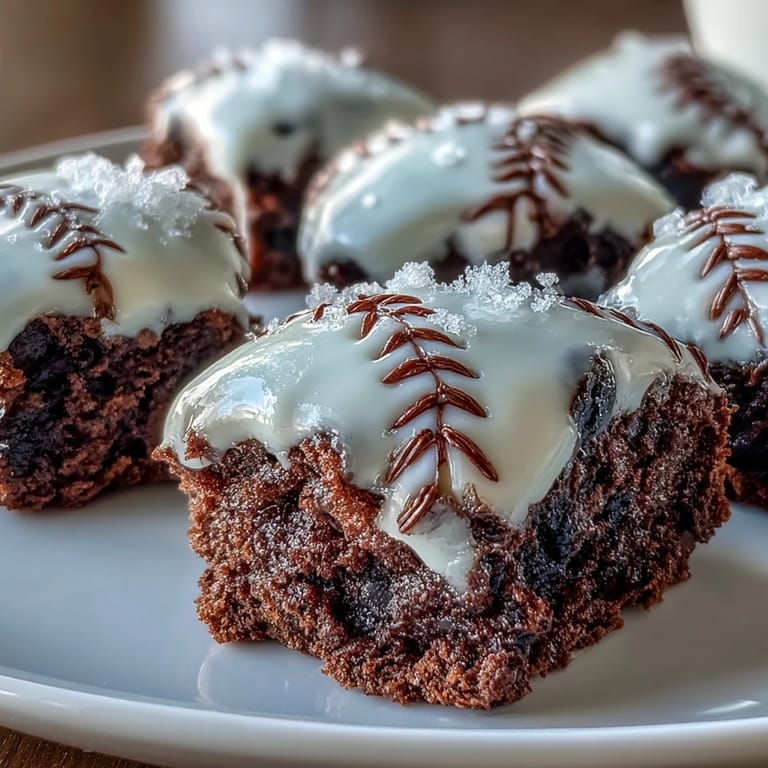 Save to Pinterest My nephew showed up to his Little League game with store-bought cupcakes, and I could see the disappointment on his face when another kid's mom arrived with homemade treats shaped like baseballs. That night, I stayed up experimenting with brownie batter and piping bags, determined to create something that would make him feel like a champion before he even stepped up to bat. These fudgy brownie bites with their delicate white icing laces became our tradition—small enough to toss in a cooler, rich enough to taste like real celebration, and fun enough that now the other parents ask for the recipe.