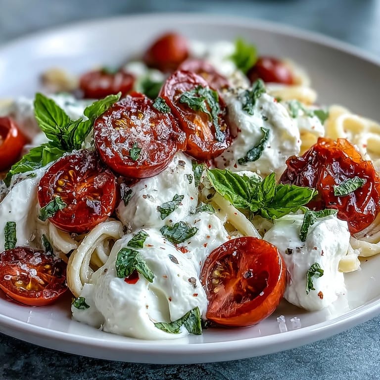Save to Pinterest The first time I made Caprese Pasta with Burrata, sunlight spilled over my kitchen counter and the basil scent mingled with the tang of ripe tomatoes. My windows were open, and every few minutes the breeze carried in distant laughter from the neighbors. I was drawn to the dish partly because the idea of tearing creamy burrata onto hot pasta felt both luxurious and simple. There's something magical about watching cheese melt into the sauce, and that anticipation made even the quick prep feel special. Minutes in, my spatula danced to the quiet rhythm of boiling pasta and sizzling garlic.