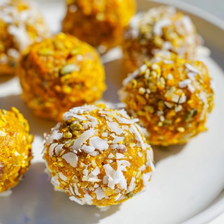Save to Pinterest My kitchen counter was covered in a golden dust after my first attempt at these energy balls, fresh turmeric staining everything it touched. I had been searching for something to replace my afternoon coffee ritual and stumbled upon this combination during a particularly sluggish winter. The earthy warmth hit me immediately, not just as a flavor but as this gentle sustained energy that kept me going through deadline after deadline without any crash.