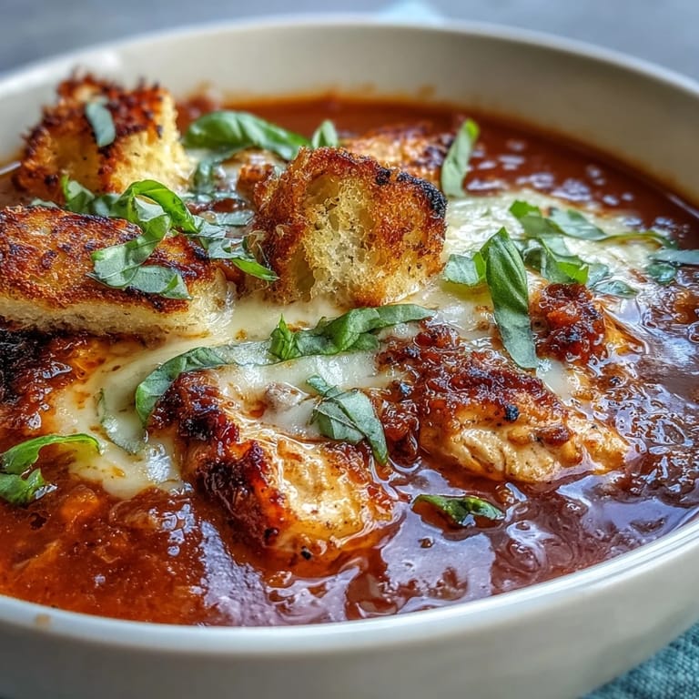 Save to Pinterest My neighbor showed up at my door one autumn evening with a thermos of soup that tasted like the best Italian restaurant we'd ever visited, and I spent the whole dinner pestering him for the recipe. Turns out, he'd been layering grilled chicken with tomatoes and melted cheese in a simple broth, and the magic was in how the char from the grill met the creaminess of Parmesan. That bowl changed how I thought about weeknight cooking, and now it's the first thing I make when someone needs comfort in a bowl.