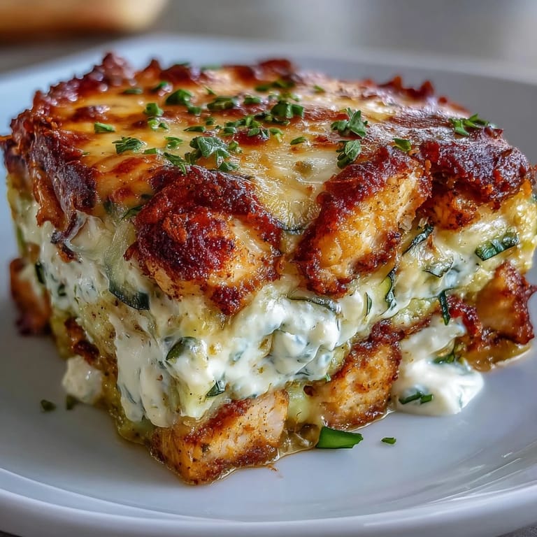 Save to Pinterest My neighbor knocked on my door one Tuesday night holding a casserole dish still warm from her oven. She'd just started training for a half-marathon and needed meals that didn't leave her starving an hour later. This chicken zucchini bake was her answer: layers of tender chicken, soft zucchini, and creamy yogurt all baked under a blanket of melted cheese. I reheated a square the next morning for breakfast and realized I'd been overthinking high-protein cooking for years.