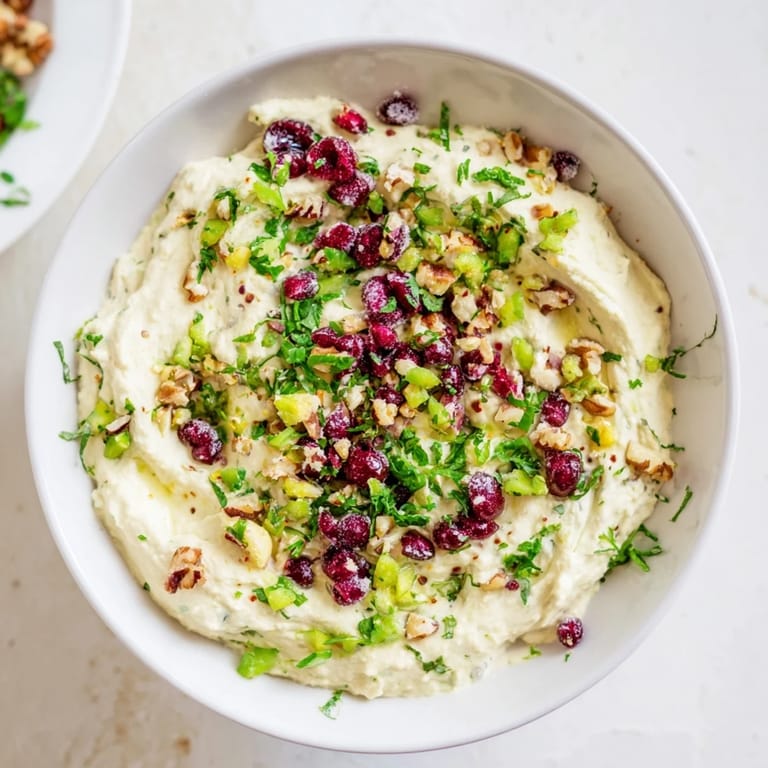 Save to Pinterest A festive, creamy dip made lighter for guilt-free holiday snacking, featuring tangy cream cheese, Greek yogurt, and bursts of cranberry and herbs.