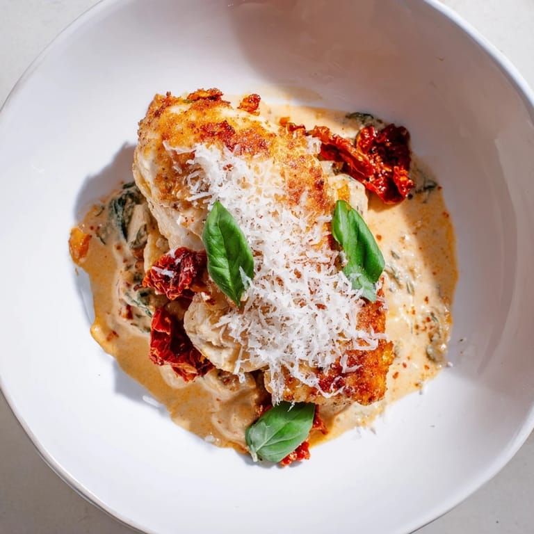 Save to Pinterest There's something about the name alone that makes you want to cook for someone special. I was testing recipes one ordinary Tuesday when I seared chicken in a pan and suddenly realized I'd created something so velvety and dramatic-looking that it felt less like dinner and more like a gesture. The sun-dried tomatoes gave the sauce this deep, wine-dark color, and when I finished it with that cloud of Parmesan on top, my skeptical partner actually stopped mid-bite and asked for the recipe. That was the moment I knew this dish had something magical in it.