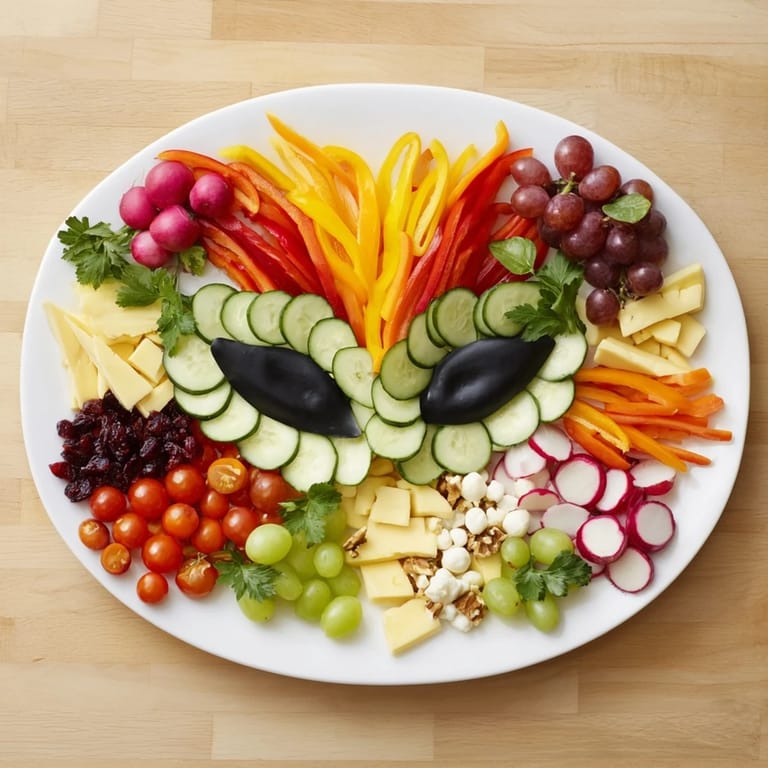 The beauty of this platter is its flexibility. For vegans, skip the cheese and use marinated tofu cubes or roasted chickpeas instead. For meat lovers, layer in cooked shrimp, smoked salmon, or cured meats along the sides. I've even made versions using only seasonal vegetables—spring asparagus and peas, summer berries and heirloom tomatoes, fall roasted beets and Brussels sprouts. The mask shape works year-round; only the colors change. Serve dips on the side—hummus, herbed cream cheese, or ranch give people options without cluttering your masterpiece.