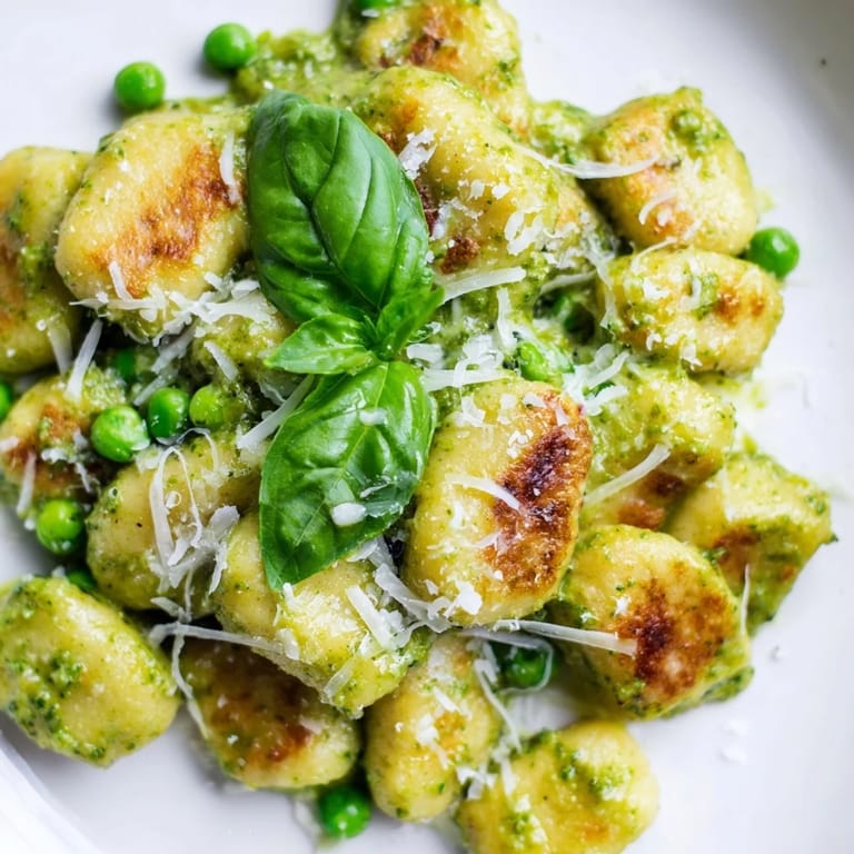Save to Pinterest I threw this together on a Tuesday night when the fridge looked bare and inspiration felt even thinner. A dusty pack of shelf-stable gnocchi sat in the pantry, the kind I'd grabbed weeks earlier without a real plan. I tossed them into a hot skillet with olive oil, and the sound of them sizzling into golden little pillows woke up my entire kitchen. By the time I stirred in pesto and peas, the whole dish had transformed into something that tasted deliberate, vibrant, and honestly better than I expected.