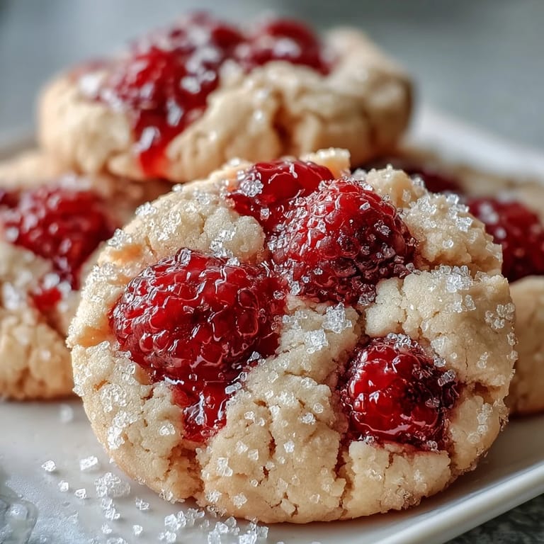 Save to Pinterest I pulled a tray of these from the oven on a rainy Tuesday and the smell alone stopped my neighbor mid-knock at the door. She asked if I was baking with actual fruit or jam, because the scent was impossibly fresh. The raspberries had softened just enough to leave pink streaks across the golden tops, and when we each grabbed one still warm, the chew was so tender it practically melted. That's when I knew this recipe was a keeper.