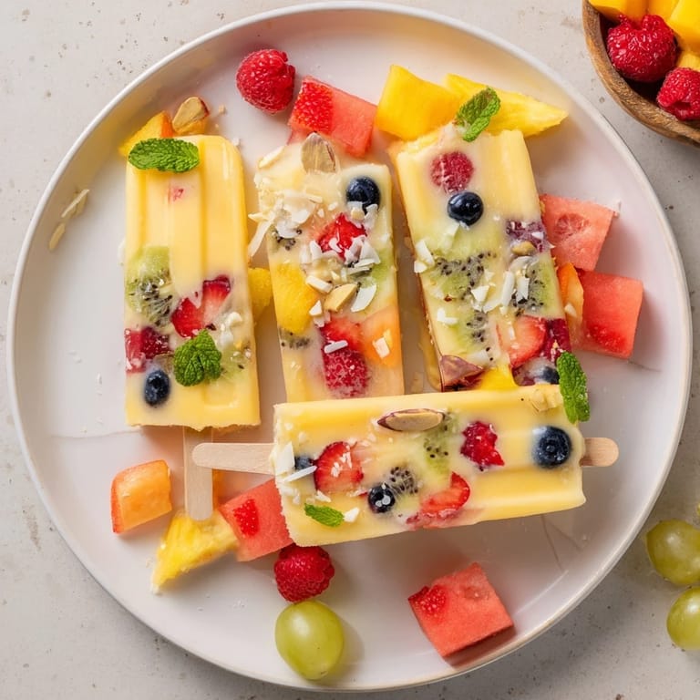 Feel free to swap in any favorite seasonal fruits such as cherries, kiwi, or peaches for variety. Adjust sweetness by adding more or less honey or maple syrup according to taste. Experiment with different nut toppings like cashews or walnuts, or leave nuts out for allergy-friendly versions. For a tropical twist, add shredded pineapple or passion fruit to the popsicle mixture.
