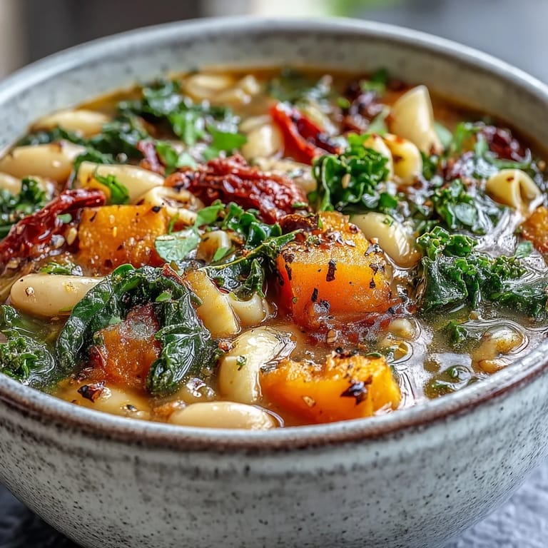 Save to Pinterest There's something about the smell of sautéed onions and celery that instantly pulls me back to my grandmother's kitchen on a grey afternoon in November. She'd be standing at the stove with the radio playing softly, layering vegetables into a pot with the kind of unhurried confidence that only comes from making soup a thousand times. I spent years watching her hands move through the motions before I understood that minestrone wasn't really a recipe—it was a conversation between you and whatever the season had to offer. This version brings together that same philosophy with butternut squash, kale, and warm spices that make your whole house smell like comfort.